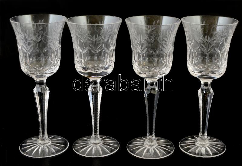 Csiszolt ólomkristály talpas pohár, (4 db), hibátlan, jelzés nélkül, m:20,5 cm (4 ×)