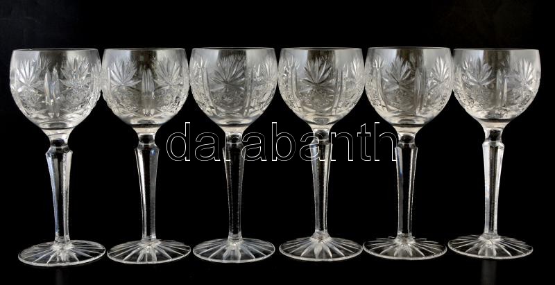 Csiszolt ólomkristály talpas pohár, (6 db), hibátlan, jelzés nélkül, m:19 cm (6×)