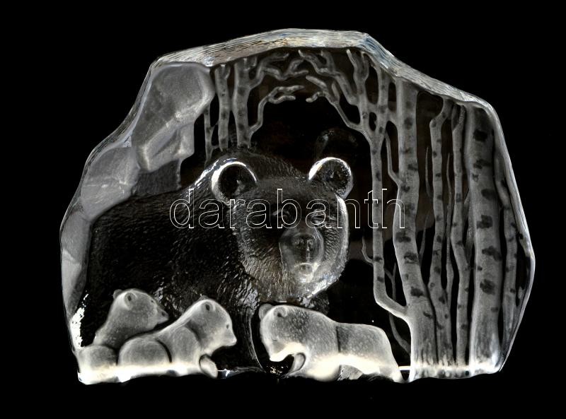 Medvebocsos üvegplasztika, formába préselt, jelzés nélkül, 18,5×25 cm