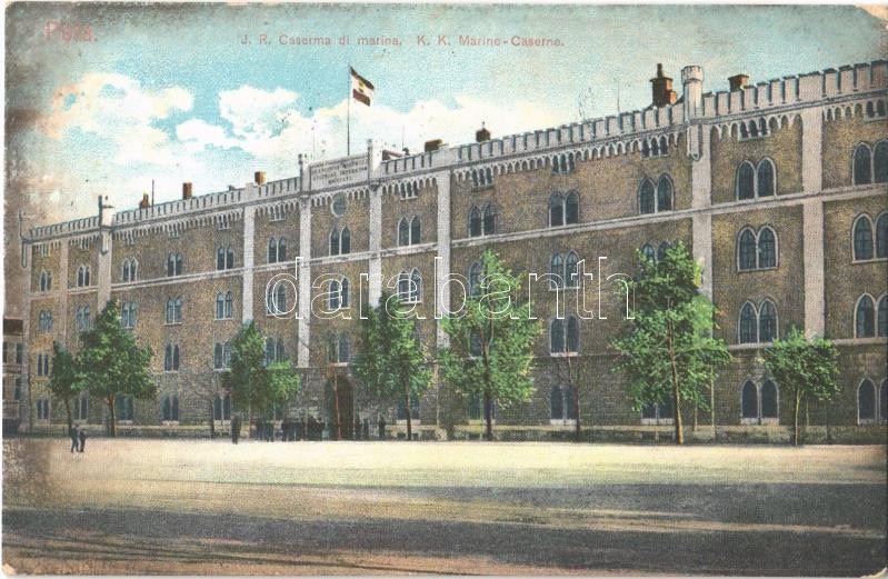 Pola, Pula; I. R. Caserma di marine / K. K. Marine-Caserne / Osztrák-M... https://www.darabanth.com/en/356-Online-auction/356.0/Postcards/Croatia~1500009/Pola-Pula-I-R-Caserma-di-marine-K-K-Marine-Caserne-Osztrak-Magyar-Haditengereszeti-lakta~II2041712