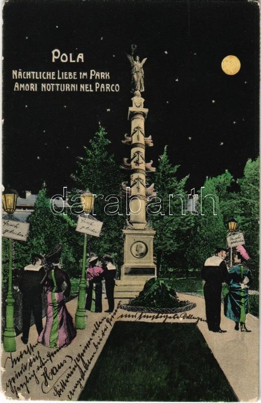 Pola, Pula; Nächtliche Liebe im Park / Amori notturni nel parco / love... https://www.darabanth.com/en/356-Online-auction/356.0/Postcards/Croatia~1500009/Pola-Pula-Nachtliche-Liebe-im-Park-Amori-notturni-nel-parco-lovers-at-night-in-the-park-humo~II2035004