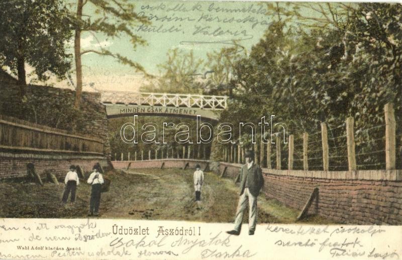 1905 Aszód, utca, híd. Kiadja Wahl Adolf