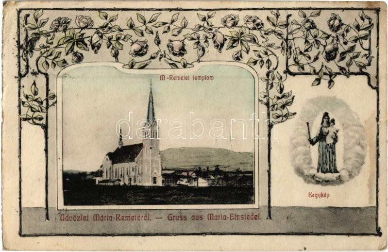 1913 Budapest II. Máriaremete, templom, kegykép. Art Nouveau, floral (Rb)