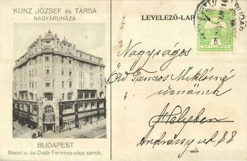 https://www.darabanth.com/en/356-Online-auction/356.0/Postcards/Hungary~1500005/1914-Budapest-V-Kunz-Jozsef-es-tarsa-uzlete-reklamlap-Deak-Ferenc-utca-es-Becsi-utca-saro~II2041538