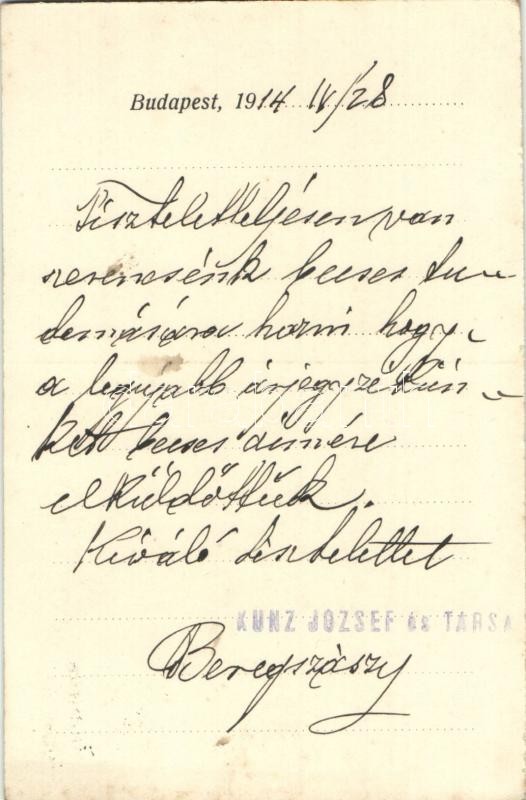 1914 Budapest V. Kunz József és társa üzlete, reklámlap. Deák Ferenc u...