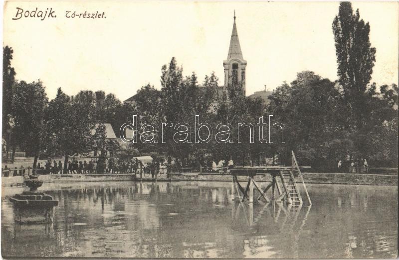 1928 Bodajk, Tó, templom. Kiadja Varga Mihály (fl)