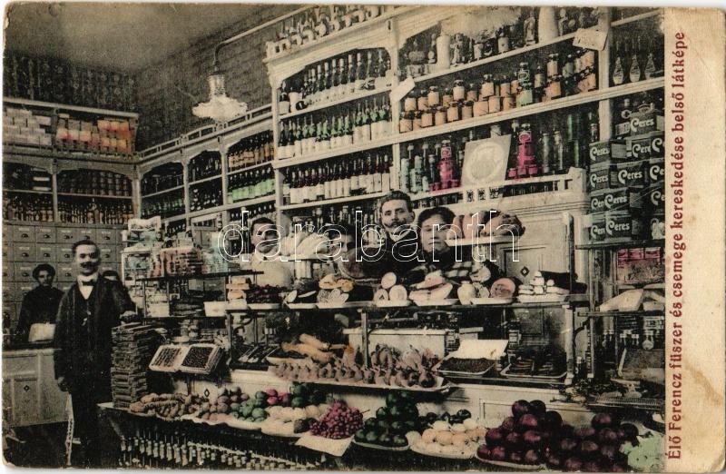 Budapest II. Élő Ferenc fűszer és csemege kereskedése, üzlet belső a s...