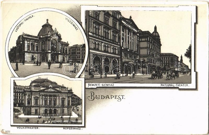 Budapest, Vígszínház, Népszínház, Nemzeti Színház. Art Nouveau, litho (EK)
