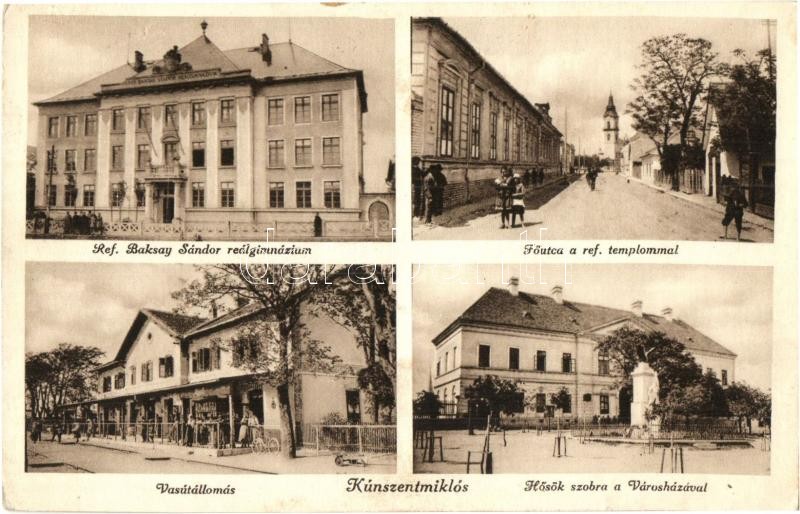 Kunszentmiklós, Vasútállomás, városháza, Hősök szobra, reálgimnázium (fa)