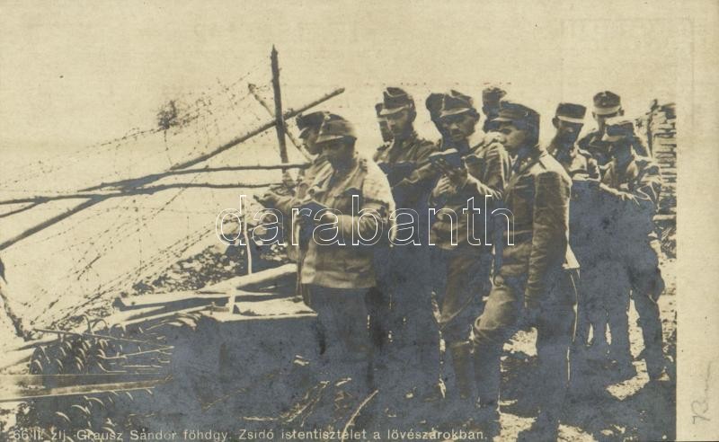 Zsidó istentisztelet a lövészárokban. 66/II. zászlóalj. Grausz Sándor ... https://www.darabanth.com/en/356-Online-auction/356.0/Postcards/Judaica~1500055/Zsido-istentisztelet-a-loveszarokban-66II-zaszloalj-Grausz-Sandor-fohadnagy-felvetele-~II2041545