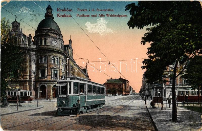 Kraków, Krakau, Krakkó; Poczta i ul. Starowislna / post office, street, trams (Rb)
