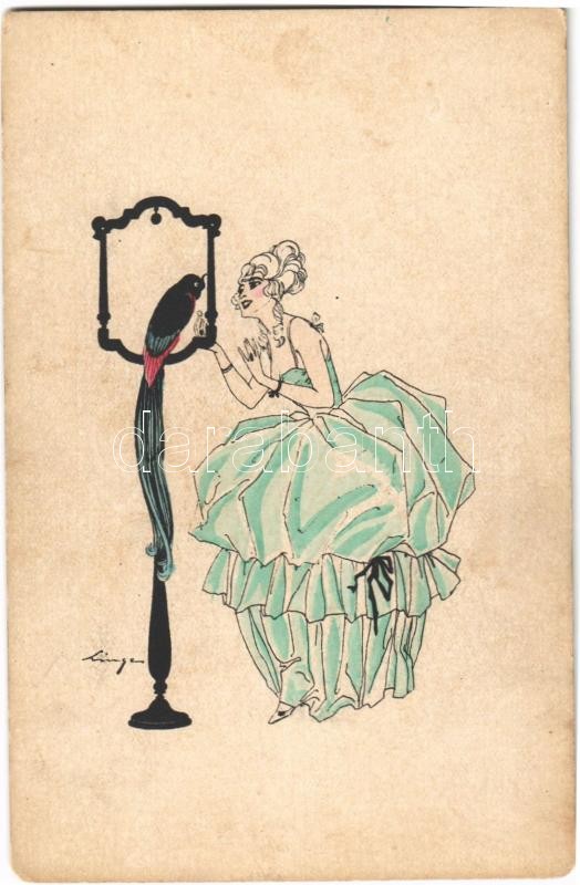 4 db régi művészlap, ebből 3 szignóval / 4 pre-1945 art postcards, 3 of them with signature