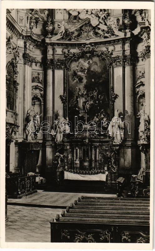 Description: Jászó, Jászóvár, Jasov; Premontrei kanonokok prépostsága, a székesegyház főoltára. A kép: Krisztus megkereszteltetése a Jordán vizében (Kracker L. János festménye) / monastery, Cathedral interior, main altar