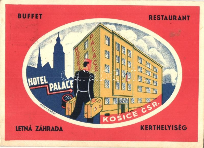 Kassa, Kosice; Hotel Palace reklámlap / hotel advertisement card s: Wi...