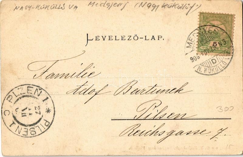 1906 Medgyes, Mediasch, Medias; látkép, templomok. Kiadja G. A. Reisse...