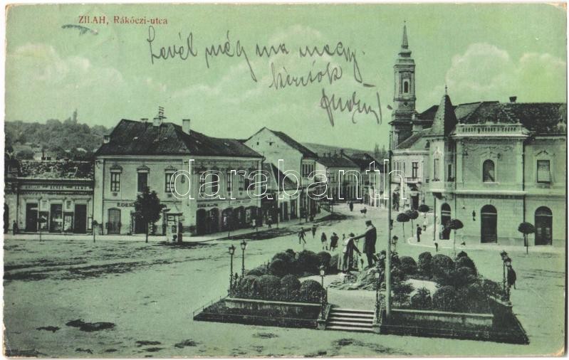 1918 Zilah, Zalau; Rákóczi utca, gyógyszertár, Seres Samu, Éder M. és fia és Luczek József üzlete. Seres Samu kiadása / street, pharmacy shops
