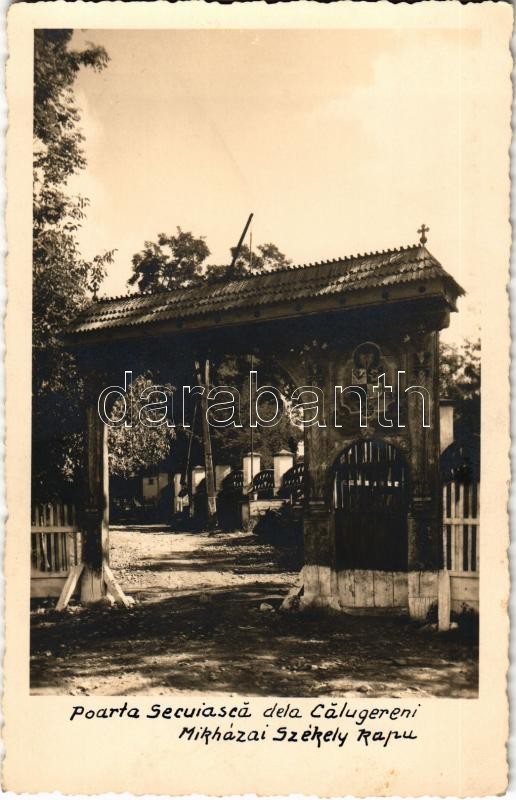https://www.darabanth.com/en/356-Online-auction/356.0/Postcards/Transylvania~1500006/1939-Mikhaza-Calugareni-Poarta-Secuiasca-Mikhazai-szekelykapu-Szekely-gate-carved-wooden-~II2035255