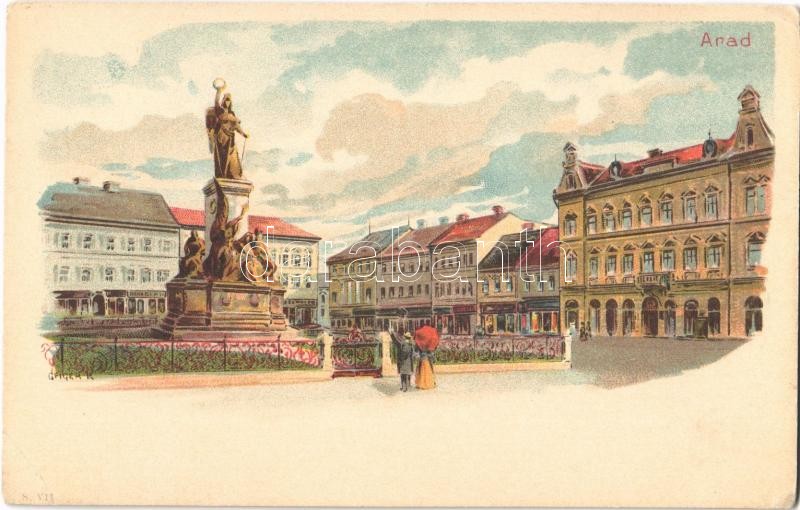 Description: Arad, Szabadság tér, Szabadság szobor az aradi vértanúk emlékére / square, statue, monument for the martyrs of the Hungarian Revolution of 1848. litho (EK)
