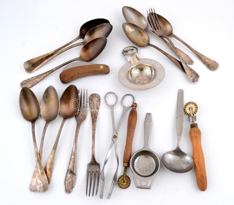 Alpakka kanál, villa, teaszűrő, derelyevágó, stb összesen: 19 db