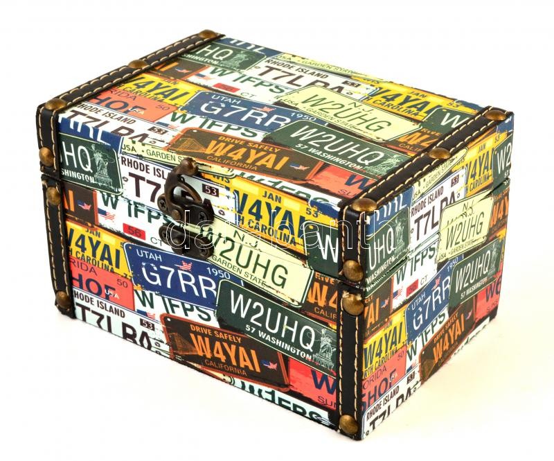 Fa dobozka rendszámos képekkel 17x12x20 cm