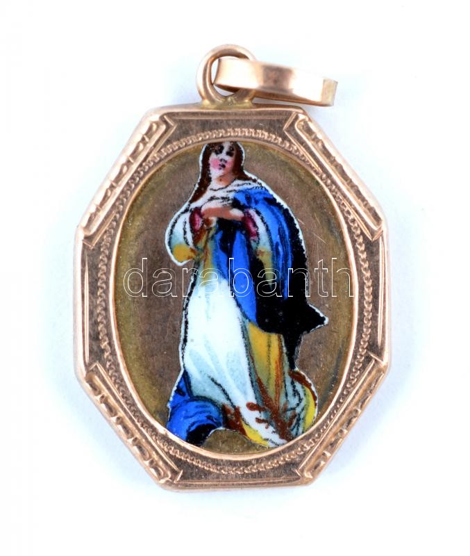 Festett porcelán Mária medál, arany (?) keretben, jelzés nélkül, 1,5×1...