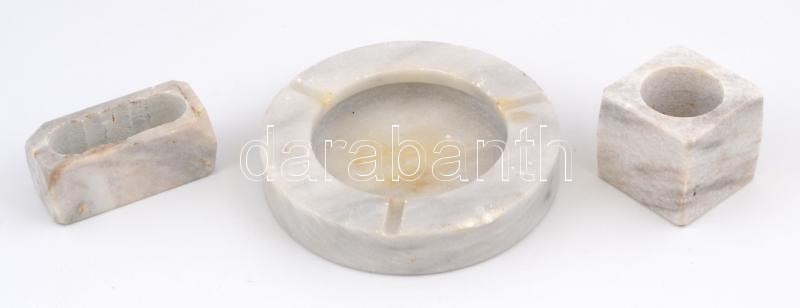 Mészkő asztali szett: hamutartó, cigaretta tartó, öngyújtó tartó. d:16...