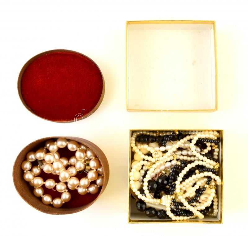 Vegyes gyöngy nyaklánc tétel, 1 pár fülbevalóval