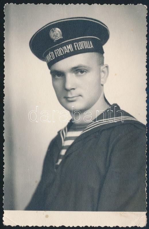 1952 Budapest, Honvéd folyami flottillás fényképe, a fotó a hátoldalán...