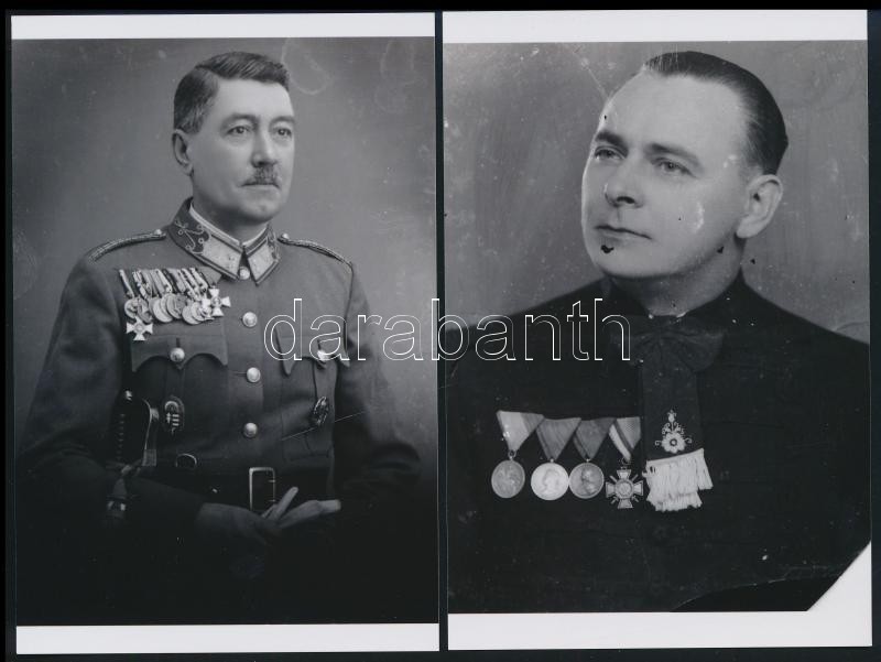 cca 1944 Katona és pap kitüntetésekkel, a kiskunfélegyházi Marika fotóműterem hagyatékából 2 db mai nagyítás, 15x10 cm