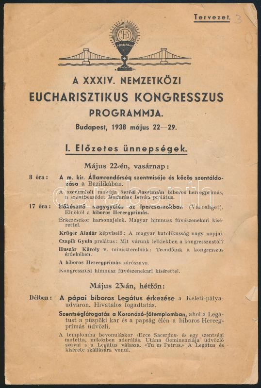 1938 Bp.,A XXXIV. Nemzetközi Eucharisztikus Kongresszus tervezett programja, szakadással 7p.