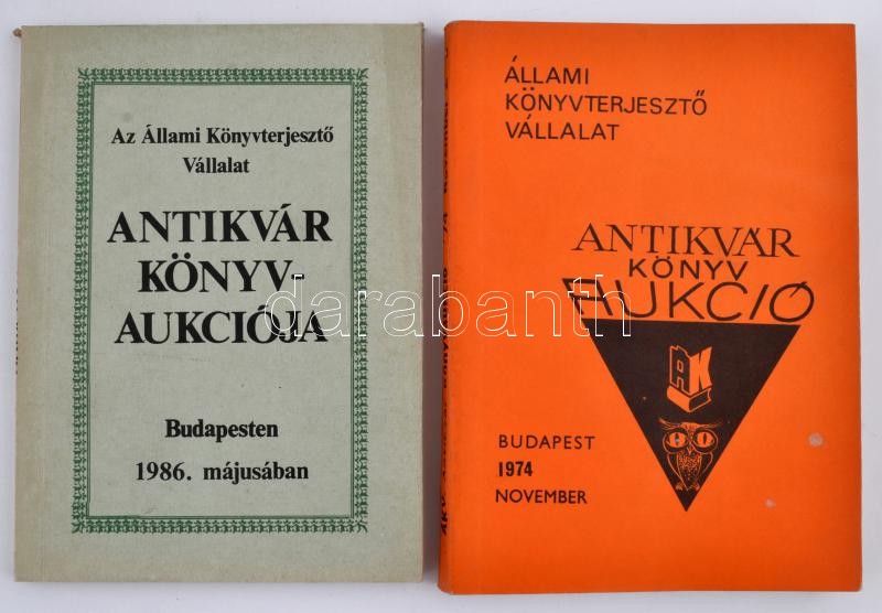 1969-1986 Állami Könyvterjesztő Vállalat antikvár könyv aukciós kataló... https://www.darabanth.com/en/357-Online-auction/357.0/Art-and-other-collectibles/Printed-Materials~500030/1969-1986-Allami-Konyvterjeszto-Vallalat-antikvar-konyv-aukcios-katalogusai-19-db-nehan~II2051912