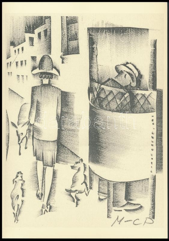 Molnár C. Pál (1894-1981): Kutyasétáltatás, kis szériás ofszet, papír, 29,5×21 cm