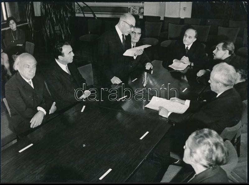 1970 Bartók Béla Emlékbizottság ülése az MTA-n, feliratozott, pecséttel jelzett, feliratozott sajtófotó, 24×18 cm