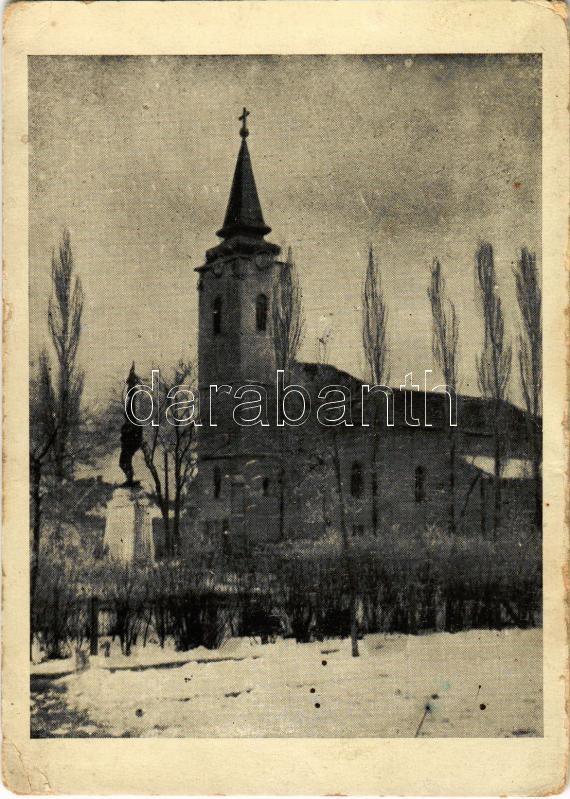 1944 Nagykáta, Római katolikus plébániatemplom télen (EK)