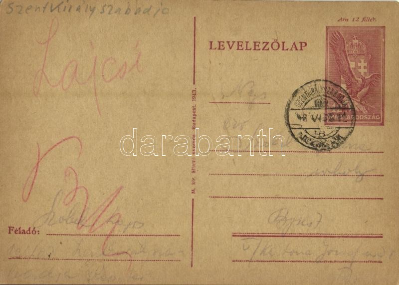 Description: 1946 Szóbel Lajos zsidó 101/60 KMSZ (közérdekű munkaszolgálatos) levele édesanyjának Özv. Szóbel Ignácznénak a szentkirályszabadjai munkatáborból / WWII Letter from a Jewish labor serviceman to his mother sent from the labor camp of Szentkirályszabadja. Judaica