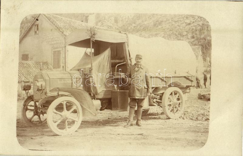 K.u.K. Kraftwagenkolonne No. 35. / WWI Austro-Hungarian K.u.K. military, soldier with automobile. photo