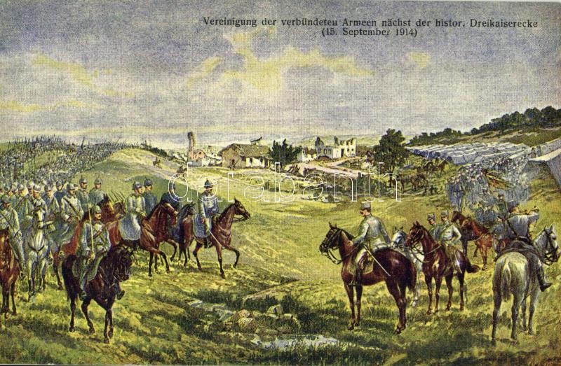Vereinigung der verbündeten Armeen nächst der histor. Dreikaiserecke (... https://www.darabanth.com/en/357-Online-auction/357.0/Postcards/Militaria~2000067/Vereinigung-der-verbundeten-Armeen-nachst-der-histor-Dreikaiserecke-15-September-1914-WWI-Au~II2053577