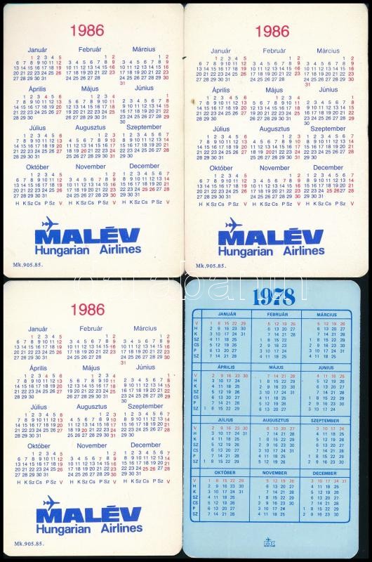 1978-1986 4 db MALÉV kártyanaptár