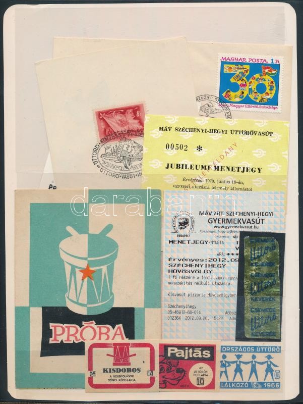 Úttörő, kisdobos témában, tiszteletjegy, próbanyomat, Úttörő Csemege, stb., 10 db