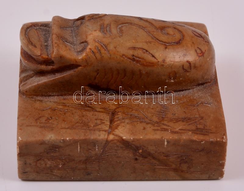 Békát ábrázoló, régi kínai körfeliratos, kő pecsétnyomó / Antique Chin...