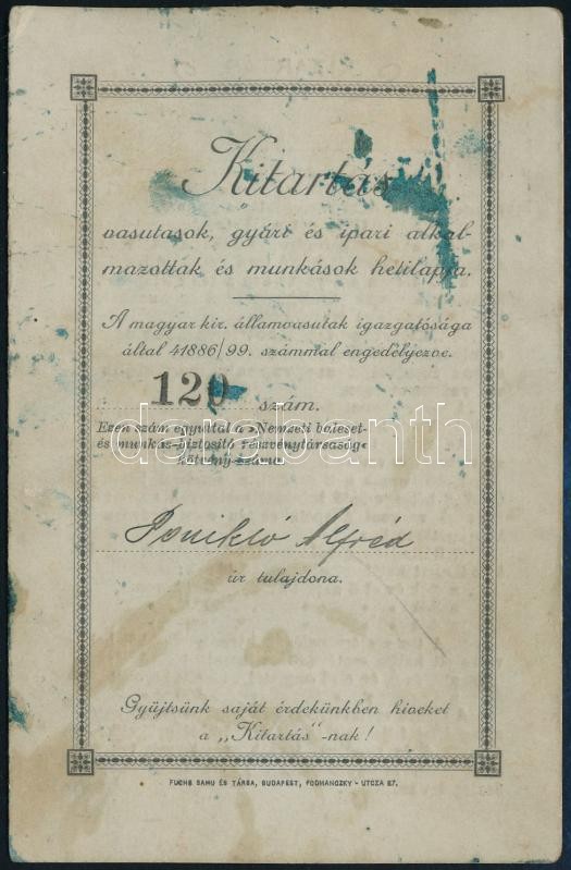 cca 1890 Kitartás munkás biztosító kötvény igazoló lap és biztosítási ...