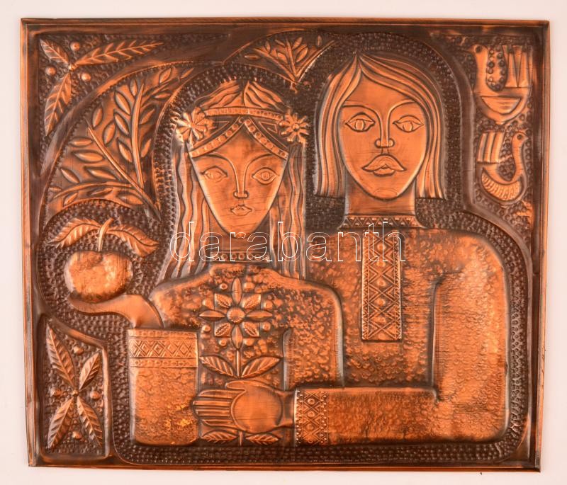 Ádám és Éva domborított retró réz falikép, 29×32 cm