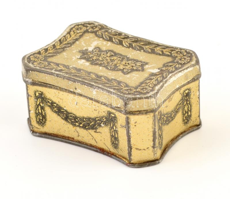Kis fém dobozka, ornamentikus díszítéssel, kopott, 5,5×3,5×2,5 cm