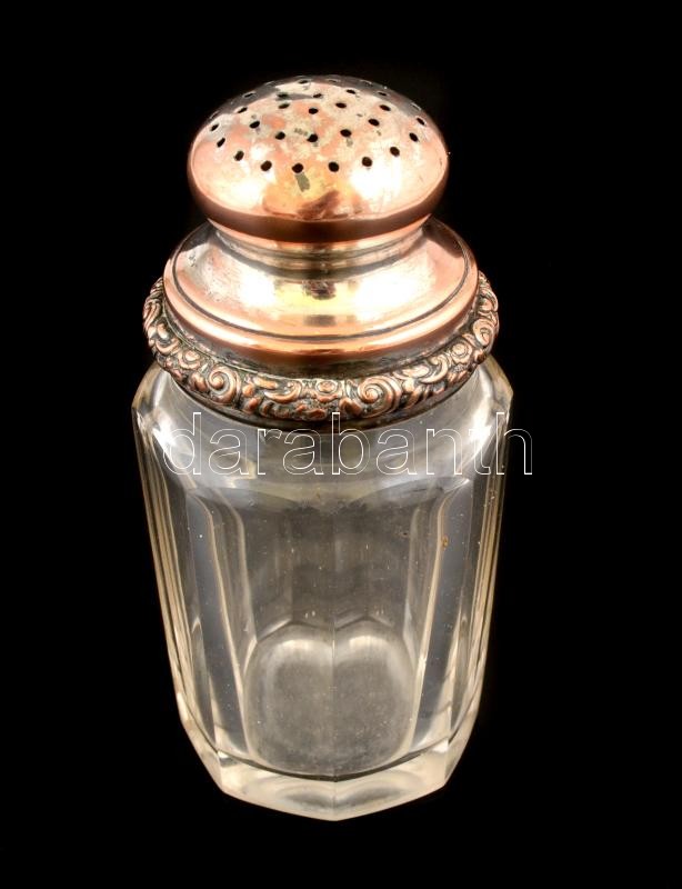 Üveg-fém só-bors szóró, karcolásokkal, kopott, m: 12 cm