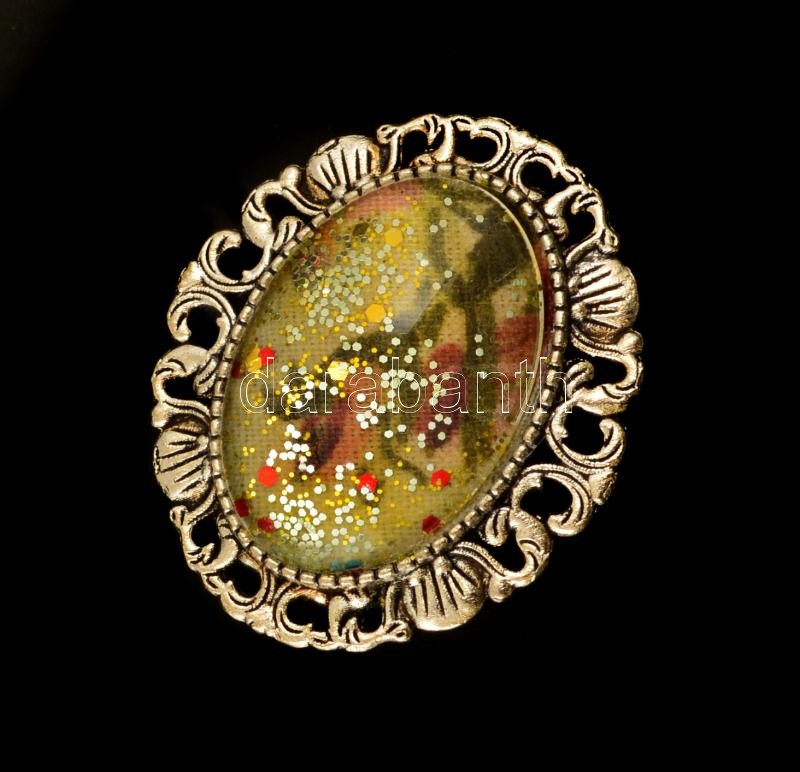 Virágmintás textil berakásos fém kitűző/medál, 3,5×3 cm
