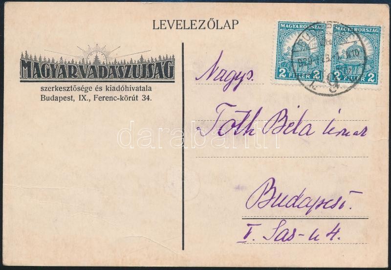 1929 Magyar Vadászújság Kiadóhivatalának kézzel Ãrt levele rákosi Tóth Béla (1873-1930) a Hitelbank igazgatója részére, tartozás kiegyenlÃtés ügyében, a vadászújság levelezÅ‘lapján.