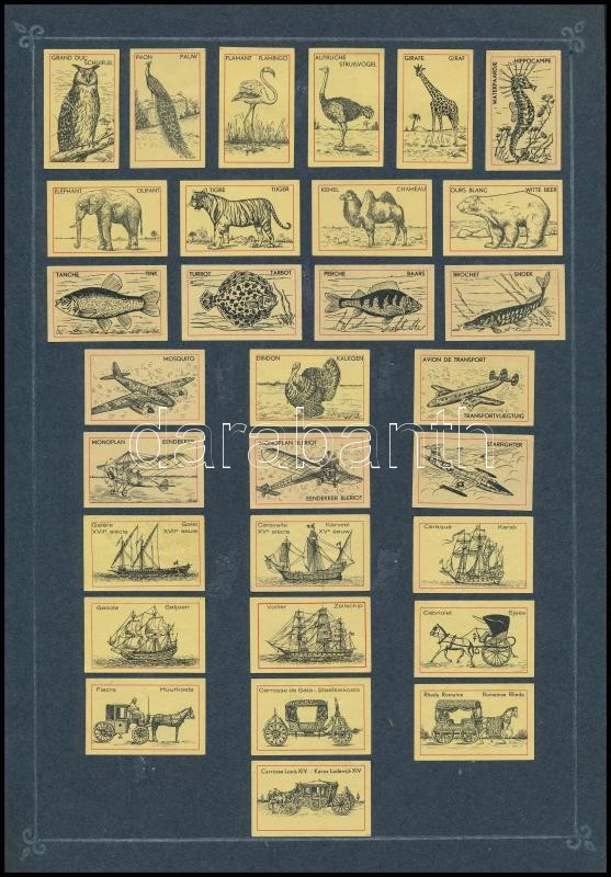 56 db belga gyufacímke 2 papírlapon (állatok, repülők, hajók)