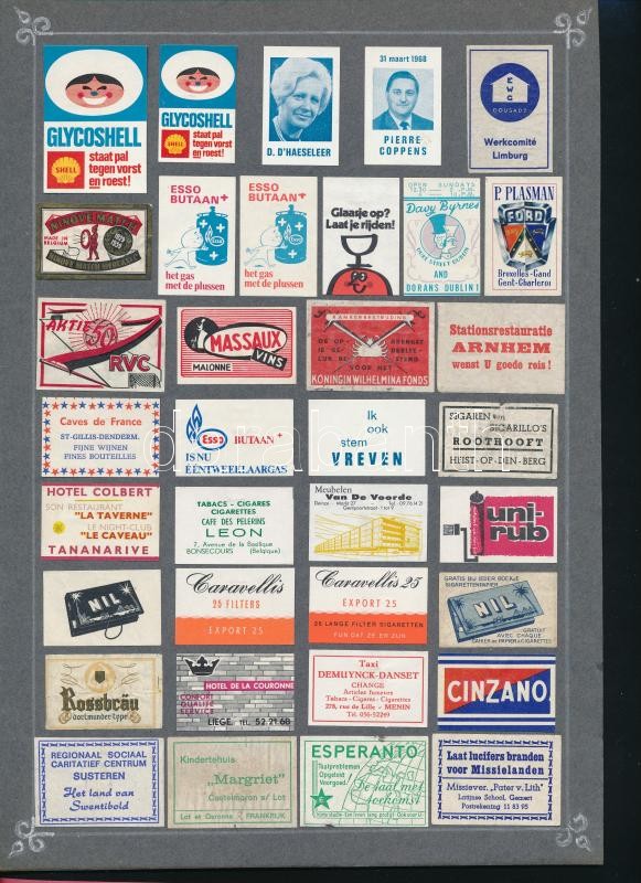 63 db belga gyufacímke 2 papírlapon reklám témában