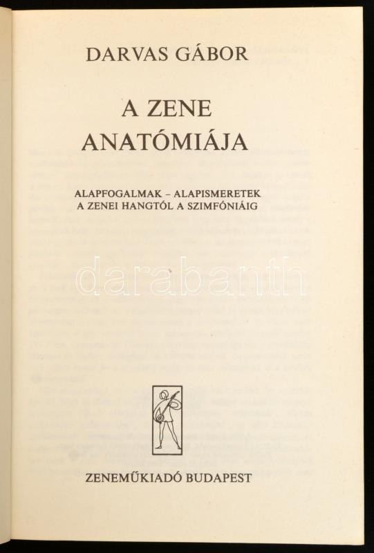 Darvas Gábor: A zene anatómiája. Bp.,1985,Zeneműkiadó. Harmadik kiadás. Kiadói papírkötés.