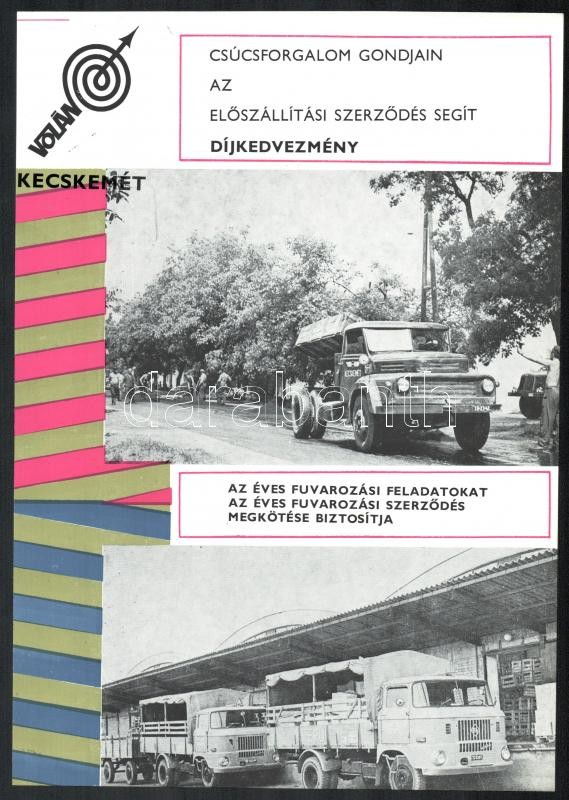Volán Kecskemét Előszállítási Szerződés kisplakát, Csepel és IFA járművekkel, 30×20 cm